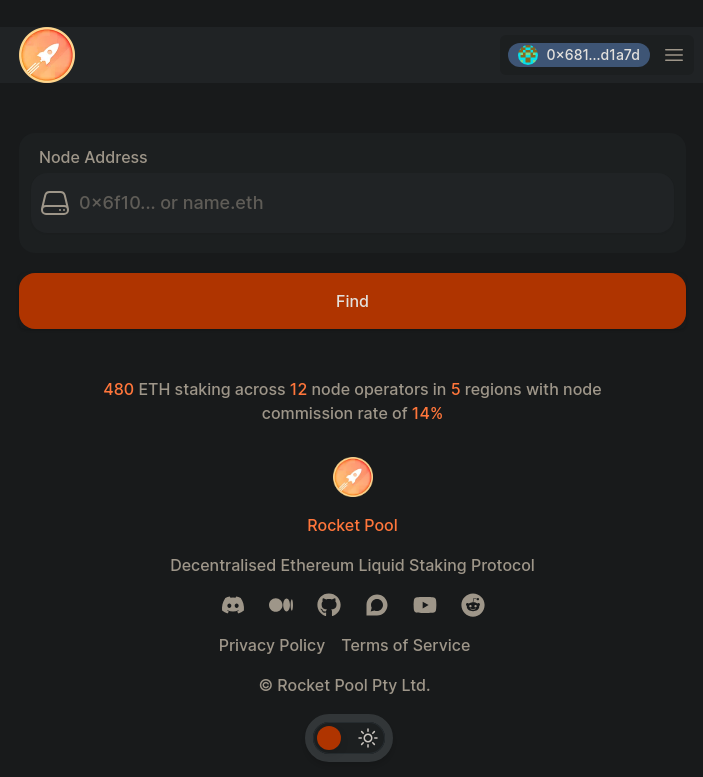 After entering an address, clicking "Find" will take you to the next menu where you can withdraw ETH you've staked on behalf of that node.
